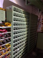 • 2x Regal mit kleinen Boxen (Gelb & Rot )